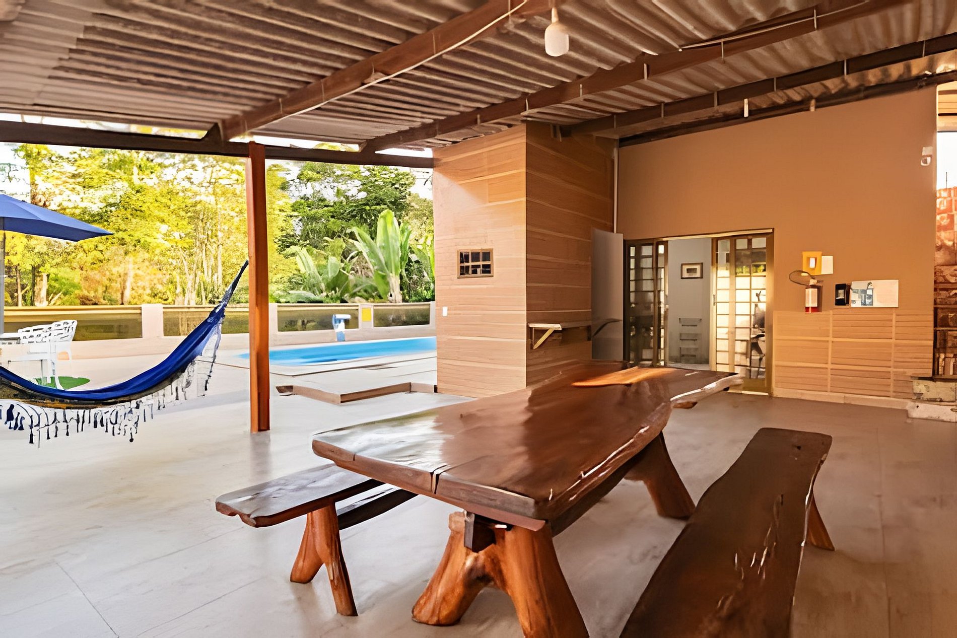 Casa tranquila cercada por area verde, com piscina aquecida, 6 quartos sendo 2 suítes, area gourmet, portao eletronico, churrasqueira, garagem para 3 carros, wifi e toda infraestrutura que você precisa para relaxar. A 40 metros da residência temos um rio que passa pela cidade e a vista espetacular da piscina para uma reserva natural. aceitamos seu bichinho de estimação pois eles fazem parte da familia. OBS: favor trazer roupa de cama, mesa, banho e itens de higiene pessoal. 🌴1.2 km do centro 🌴 ✅ Período: mínimo de (02 diárias) 🏡 ⤵️ 6 quartos (2 suíte), 3 banheiros, 2 Sala espaçosa , TV, Cozinha completas, Varanda, area gourmet, Churrasqueira, Wi-Fi, Portao Eletronico, Garagem 3 carros, Piscina aquecida com aquecimento “SOLAR” dependendo de fatores climáticos para aquecimento, iluminação e hidromassagem Ao lado de uma reserva onde terá o sossego e o canto dos pássaros .  🐕 É permitido animais Casa GG Nossa cozinha tem: Pratos Talheres Jogo de xícaras e pratos pequenos para café da manhã . Garrafas térmicas Panelas grandes Panelas pequenas Panela de pressão Kits de churrasco Tábuas de carne Liquidificador Air fryer 2 sanduícheiras Bacias para preparo de carnes Grelha Escorredor de Lavar arroz 2 geladeiras 2 Cooktop ‼️O que é necessário levar Lençóis p/ cama de casais Toalhas Panos de pratos Papel higiênico 🧻 Detergente ⚠️⚠️ Disponível para feriados , fim de semana , preço especial de segunda a sexta-feira.