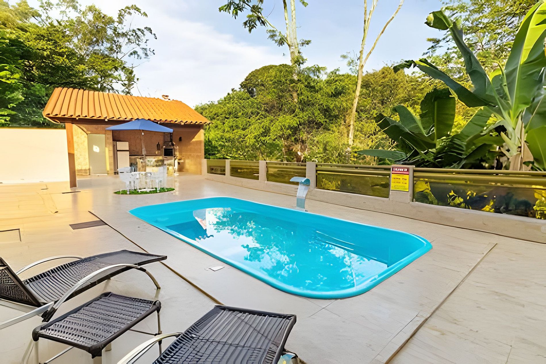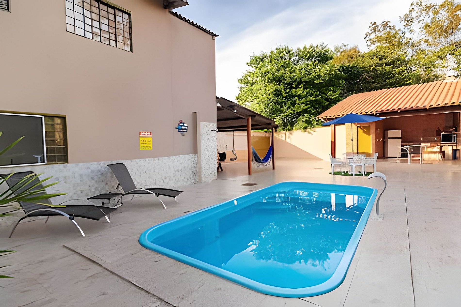 Casa tranquila cercada por area verde, com piscina aquecida, 6 quartos sendo 2 suítes, area gourmet, portao eletronico, churrasqueira, garagem para 3 carros, wifi e toda infraestrutura que você precisa para relaxar. A 40 metros da residência temos um rio que passa pela cidade e a vista espetacular da piscina para uma reserva natural. aceitamos seu bichinho de estimação pois eles fazem parte da familia. OBS: favor trazer roupa de cama, mesa, banho e itens de higiene pessoal. 🌴1.2 km do centro 🌴 ✅ Período: mínimo de (02 diárias) 🏡 ⤵️ 6 quartos (2 suíte), 3 banheiros, 2 Sala espaçosa , TV, Cozinha completas, Varanda, area gourmet, Churrasqueira, Wi-Fi, Portao Eletronico, Garagem 3 carros, Piscina aquecida com aquecimento “SOLAR” dependendo de fatores climáticos para aquecimento, iluminação e hidromassagem Ao lado de uma reserva onde terá o sossego e o canto dos pássaros .  🐕 É permitido animais Casa GG Nossa cozinha tem: Pratos Talheres Jogo de xícaras e pratos pequenos para café da manhã . Garrafas térmicas Panelas grandes Panelas pequenas Panela de pressão Kits de churrasco Tábuas de carne Liquidificador Air fryer 2 sanduícheiras Bacias para preparo de carnes Grelha Escorredor de Lavar arroz 2 geladeiras 2 Cooktop ‼️O que é necessário levar Lençóis p/ cama de casais Toalhas Panos de pratos Papel higiênico 🧻 Detergente ⚠️⚠️ Disponível para feriados , fim de semana , preço especial de segunda a sexta-feira.