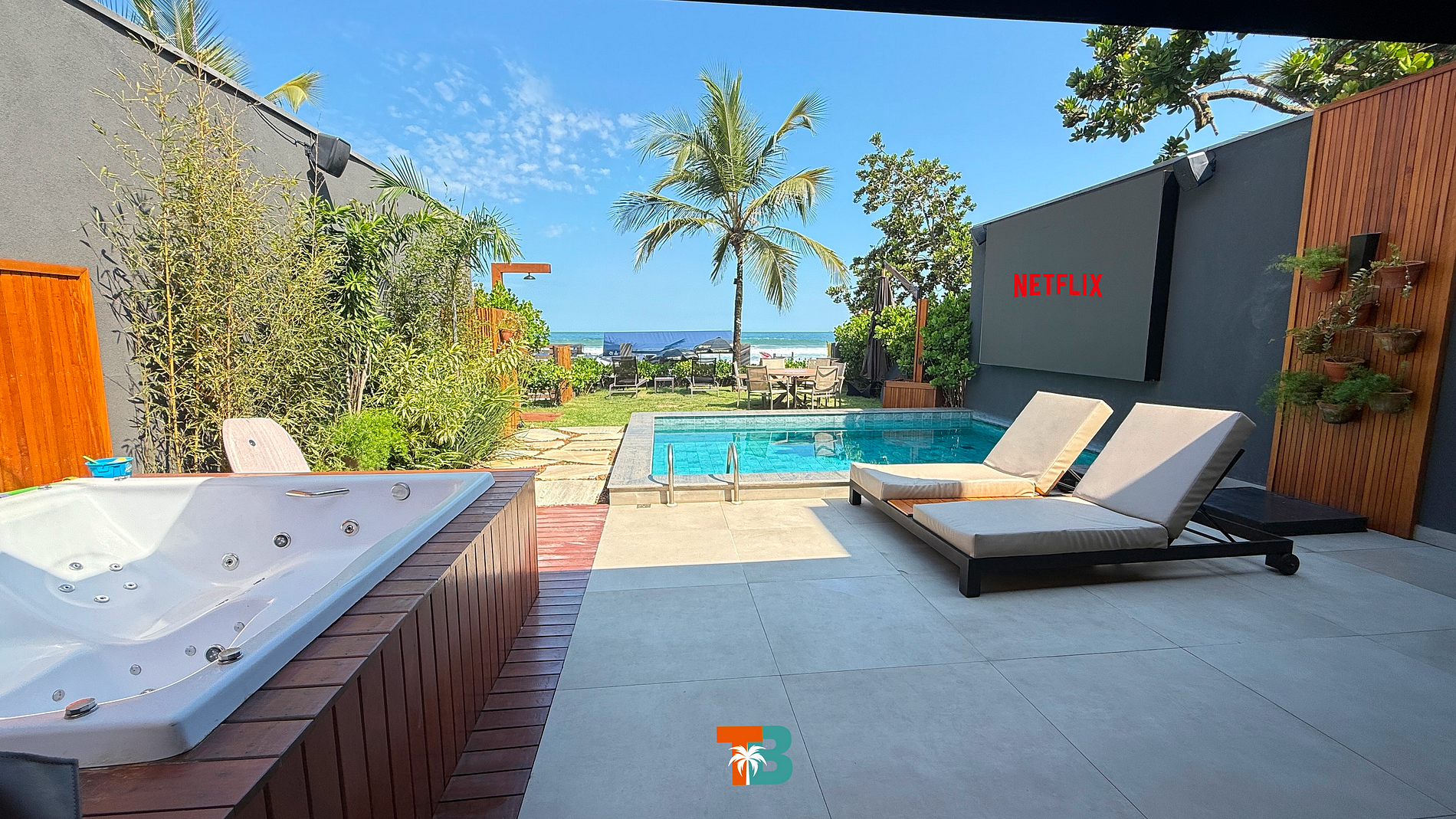 Casa de frente para o mar com piscina privativa, jacuzzi, telão, área de churrasqueira e duas vagas de garagem. São quatro suítes com ar-condicionado, oferecendo máximo conforto e privacidade. Localização privilegiada, a poucos passos da praia e próxima dos melhores restaurantes e atrações locais. Aproveite a vista panorâmica para o mar, um ambiente tranquilo para relaxar e o serviço de praia exclusivo para tornar sua experiência ainda mais especial.