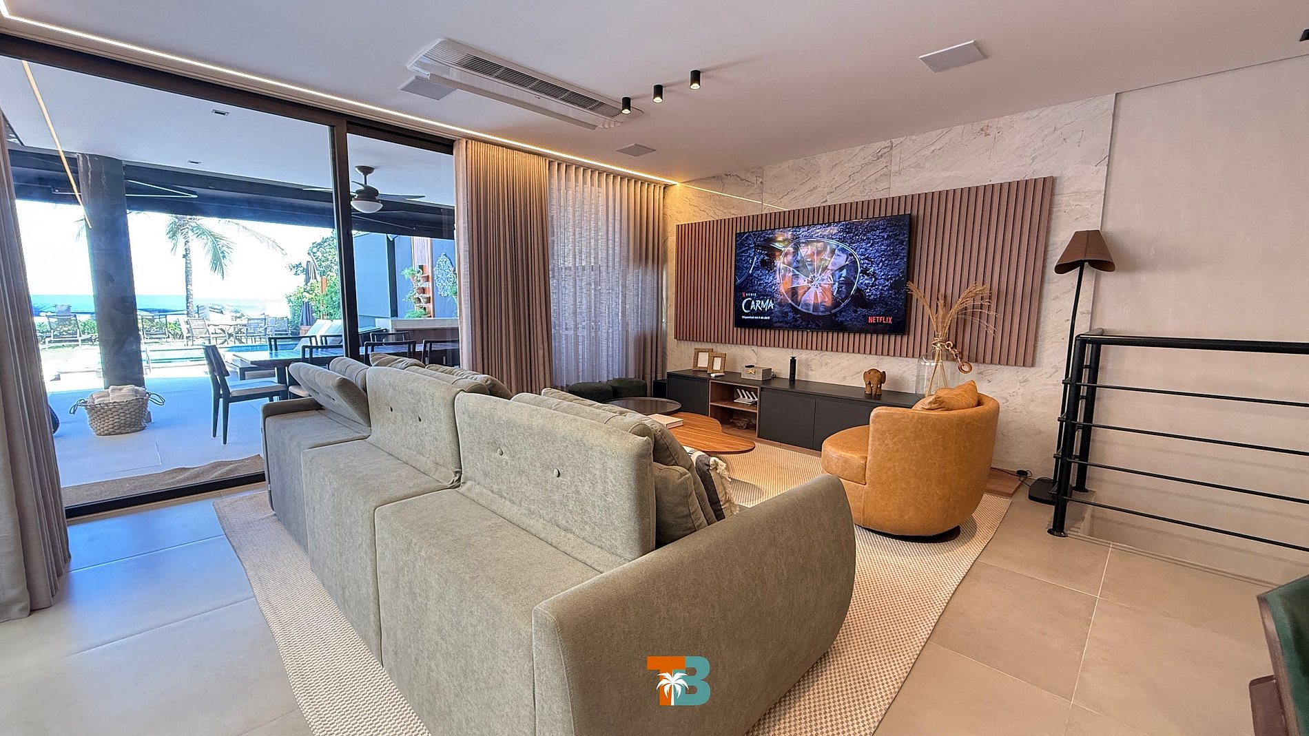 Área de estar com sofá/cadeira