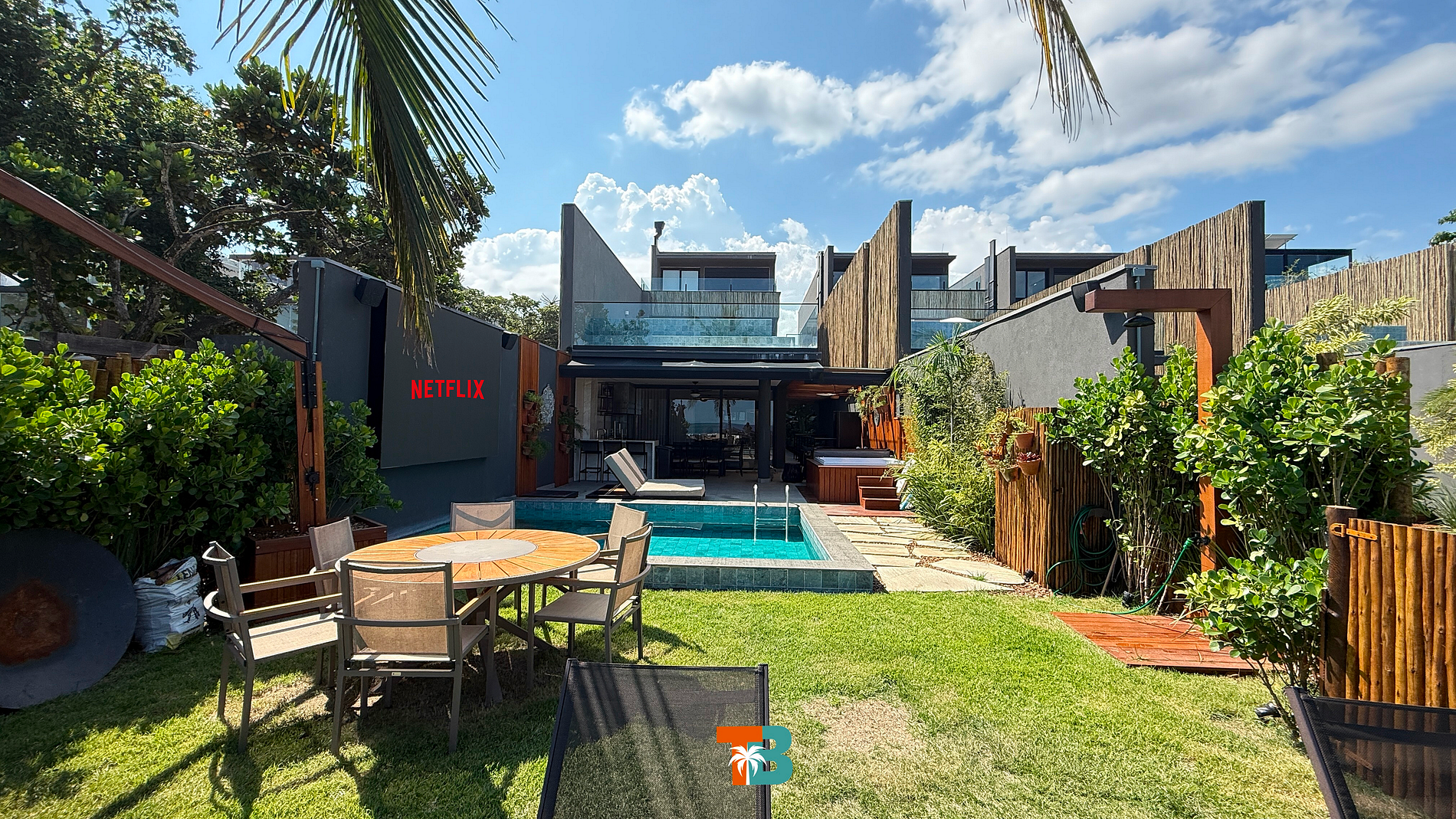 Casa de frente para o mar com piscina privativa, jacuzzi, telão, área de churrasqueira e duas vagas de garagem. São quatro suítes com ar-condicionado, oferecendo máximo conforto e privacidade. Localização privilegiada, a poucos passos da praia e próxima dos melhores restaurantes e atrações locais. Aproveite a vista panorâmica para o mar, um ambiente tranquilo para relaxar e o serviço de praia exclusivo para tornar sua experiência ainda mais especial.